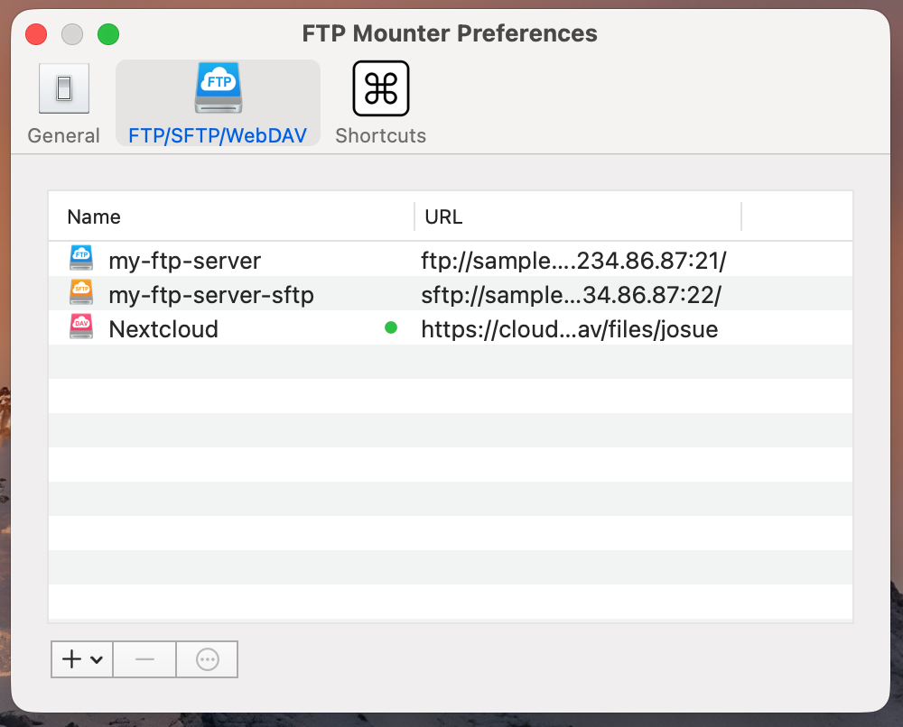- Mounts FTP, FTPS, SFTP and WebDAV