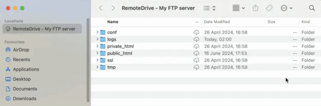 Once connected, remote content becomes accessible through macOS Finder as part of the native file system environment, making it convenient for continuous access to remote server storage or cloud services.